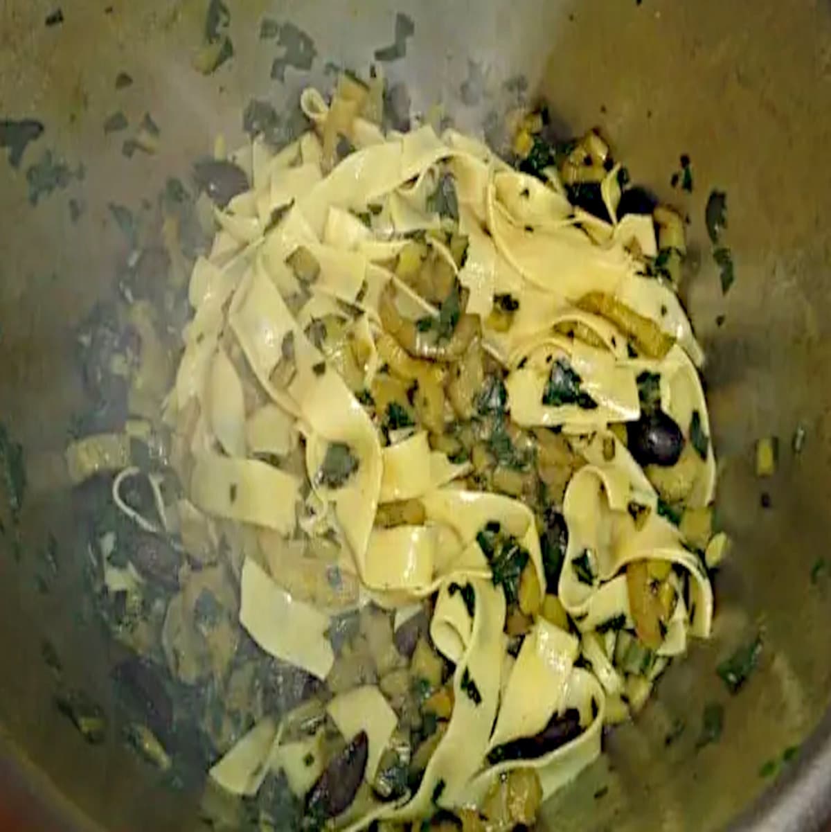 - Lavez, découpez les blettes en lamelles de 1 cm puis, coupez-les en deux. Dans l'huile d'olive faites suer les blettes avec un peu d'ail et réservez.