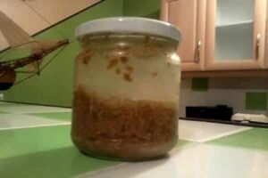 Attention de ne pas remplir le bocal jusque en haut, car le mélange gonfle pendant la fermentation.