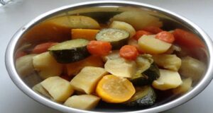 Dans le faitout, faites suer les épices (ail, oignon), ajoutez les légumes, le thym , le laurier et deux verres d’eau. Salez et poivrez.