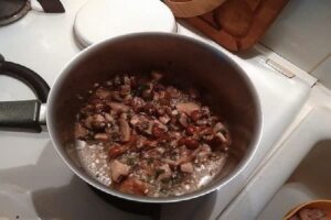 Lavez, égouttez, émincez les champignons de la forêt puis, hachez finement les gousses d’ail.