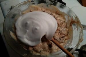 Dans un saladier, montez 2 blancs d’œufs en neige. Incorporez dans la béchamel les champignons, le thon puis, délicatement les blancs en neige.