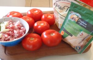 Ingrédients pour préparer les pâtes à la provençale.